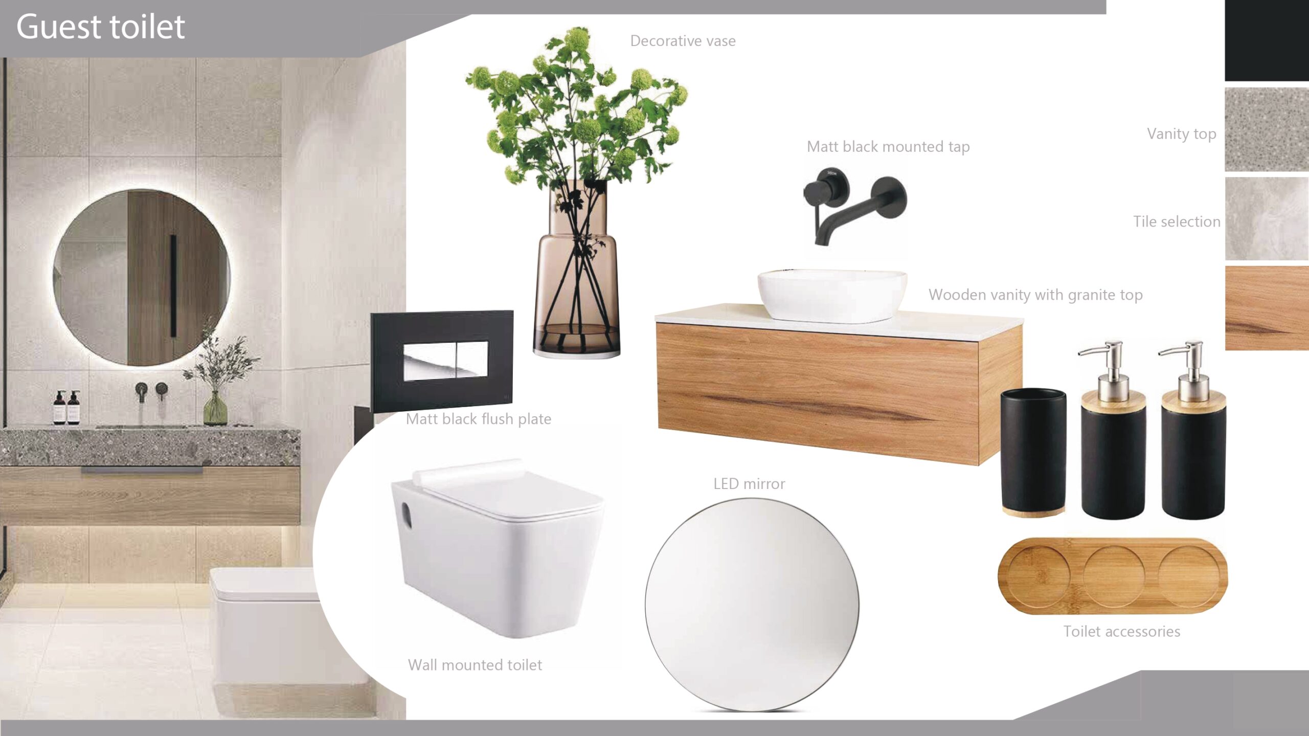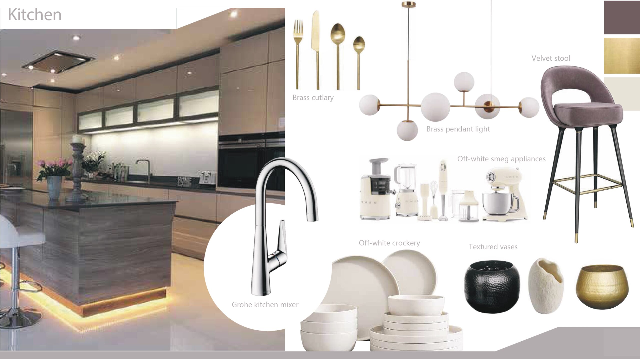 A newly bought property that needs to be made more modern, looking at current trends in both furniture, fittings, and colour palets come up with an interior look and feel that will look more lively, pop and welcoming. Maintain neutral colours throughout the spaces and ensure that spaces flow seamlessly from one room to another.