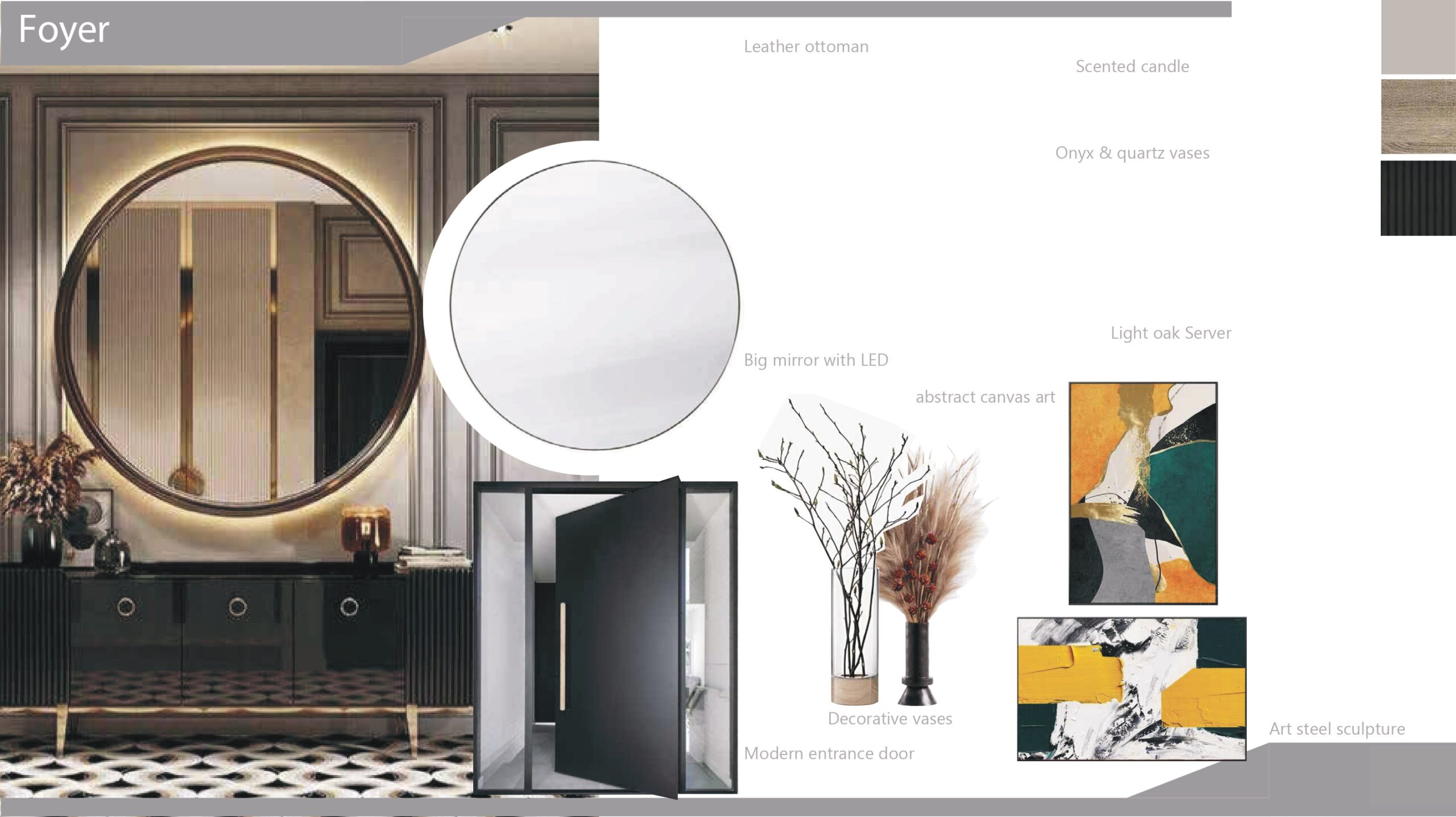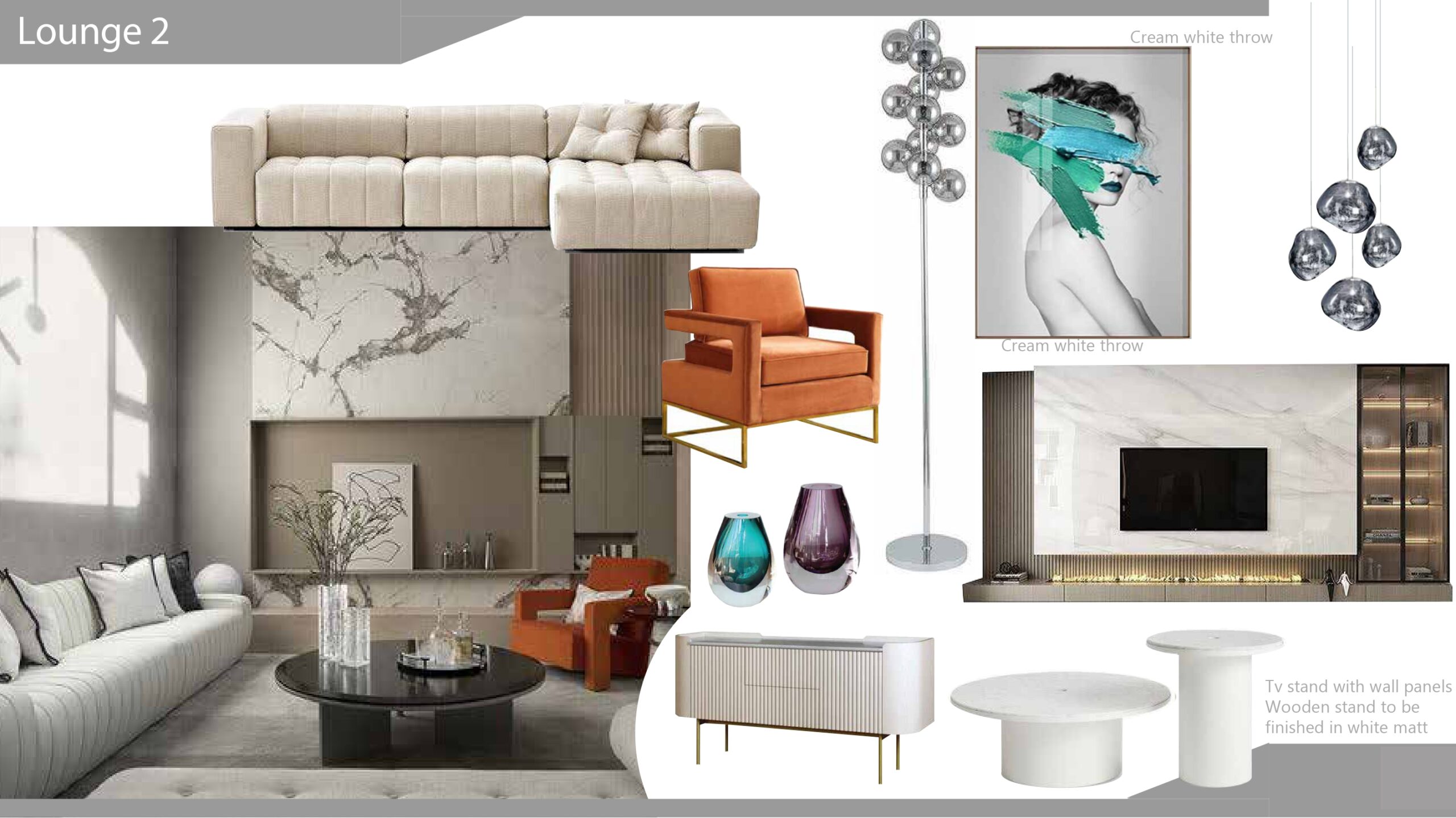 One of the key elements is to select furniture and accessories that are modern and unique but at the same time complimenting each other. Colour palet remains neutral with grey and earthy tones and using colour in art and decor to break the monotone colour.
